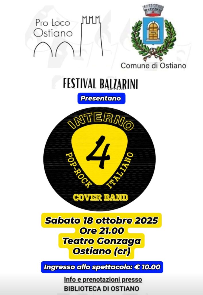 🎟 Ingresso 10€ (info e prenotazioni in Biblioteca di Ostiano)