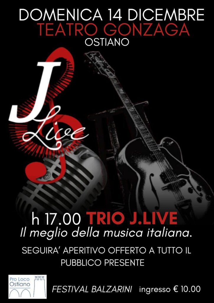 Per il ciclo Festival Balzarini, concerto del Trio J.Live, che proporrà sul palco del teatro Gonzaga il meglio della musica italiana.